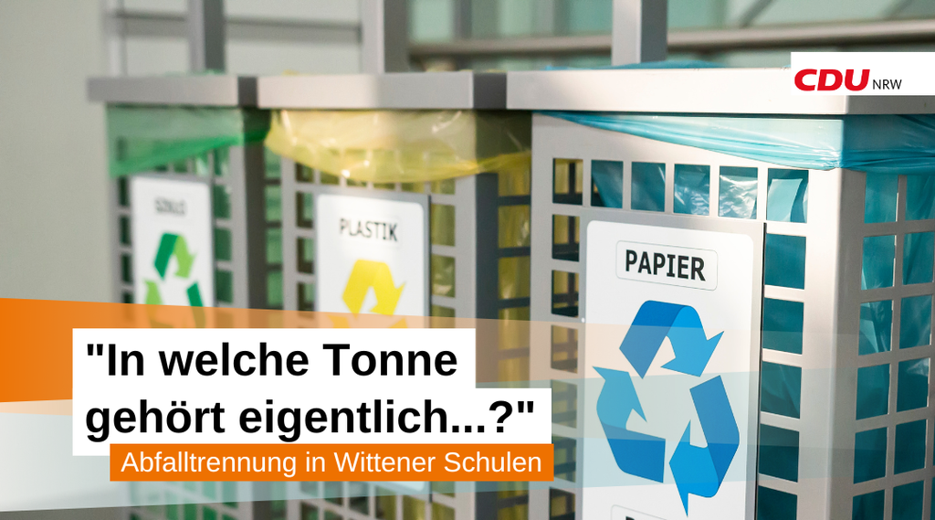 Im letzten Jahr verabschiedete der Rat eine Nachhaltigkeitsstrategie, dessen unabdingbarer Maßnahmenbestandteil es ist, das Bewusstsein für das Wertstoffpotential von Abfällen zu sensibilisieren und zu schärfen. Hier sieht die Wittener CDU-Fraktion einen Ansatzpunkt und beauftragt die Stadtverwaltung, ein funktionierendes und schülergerechtes Abfalltrennsystem in ihren Schulen einzuführen. Andere Städte, wie beispielsweise Ennepetal, gehen hier bereits mit gutem Beispiel voran.