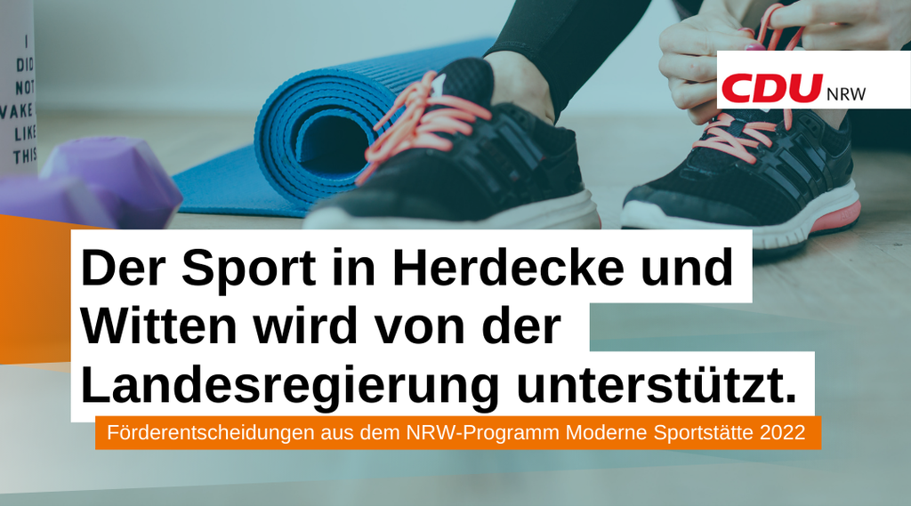 Die CDU-geführte Landesregierung mit Ministerpräsident Hendrik Wüst MdL weiß, was die Menschen vor Ort bewegt, und sie macht, worauf es ankommt. Im Bereich des Sports hat uns in Witten und Herdecke das Förderprogramm ‚Moderne Sportstätte 2022‘ in der jetzt zu Ende gehenden Legislaturperiode enorm unterstützt. Insgesamt erhielten die Sportvereine in Witten und Herdecke Fördermittel in Höhe von knapp 1,5 Millionen Euro.